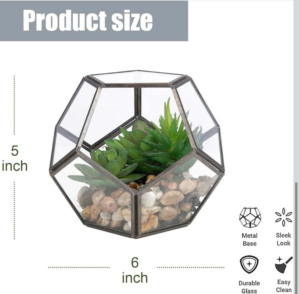 Artificial Succulents & Pebbles with Geometric Glass Terrarium
