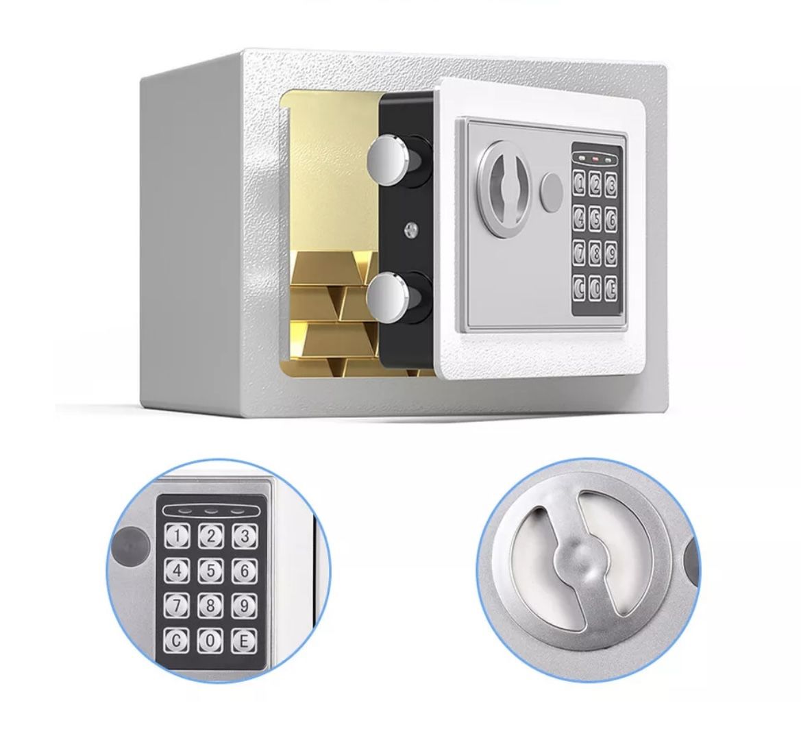 Safe Box with Password Lock and Two Emergency Keys (Powered by 4xAA Batteries)