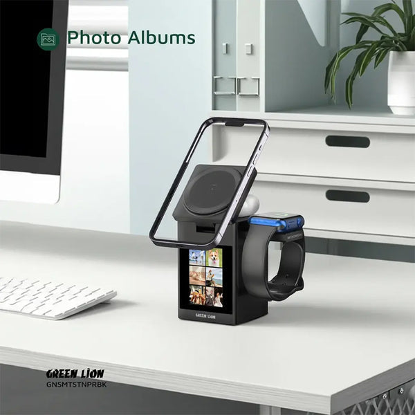 The Green Lion Smart Station Pro is a multi-output wireless charger with MagSafe-compatible N52 magnets, built-in 5W Bluetooth speaker, and...