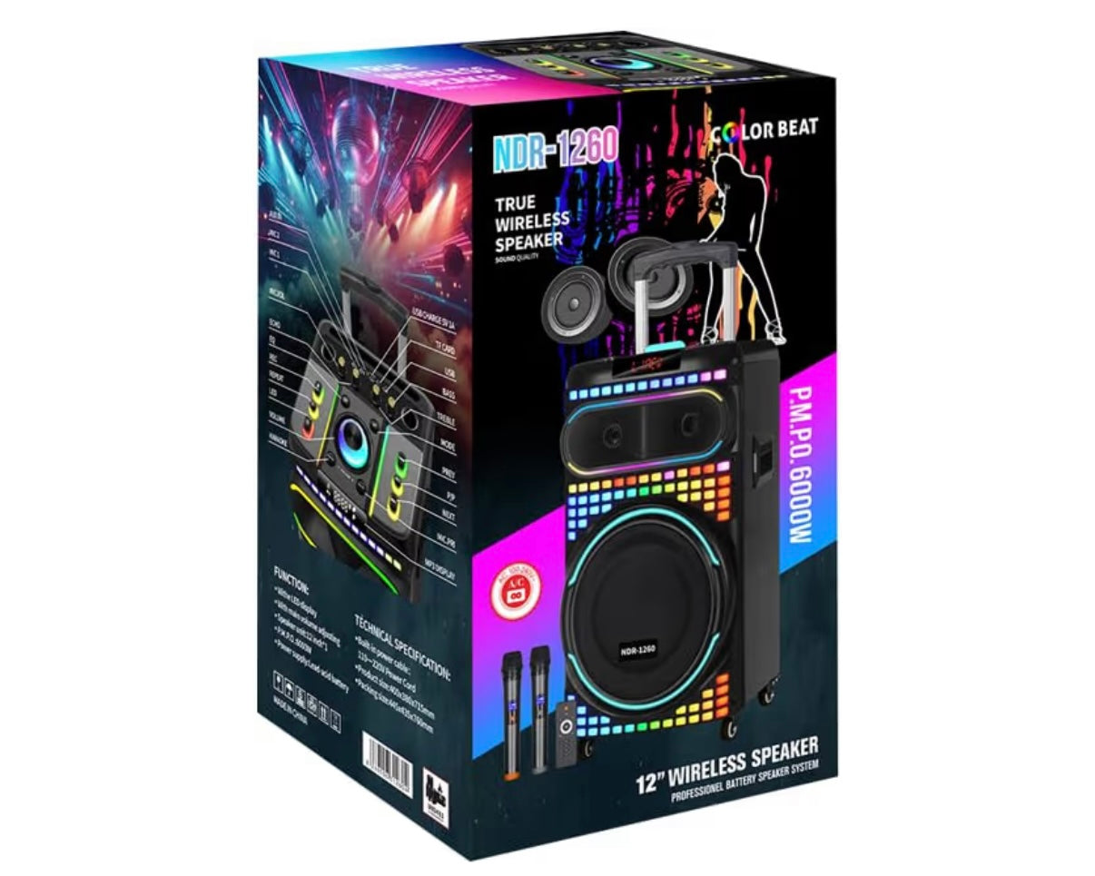 NDR-1260 12” Karaoke BT Speaker With 2 Wireless Microphones And remote Control